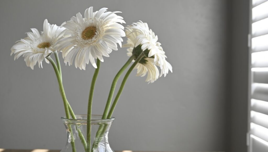 また、ガーベラを飾る場所にも工夫が必要です。風通しの良い場所に置くことで、ガーベラの持ちが良くなります。特に、寒さの影響を避けるために直射日光の当たらない、温度管理がされている場所が最適です。